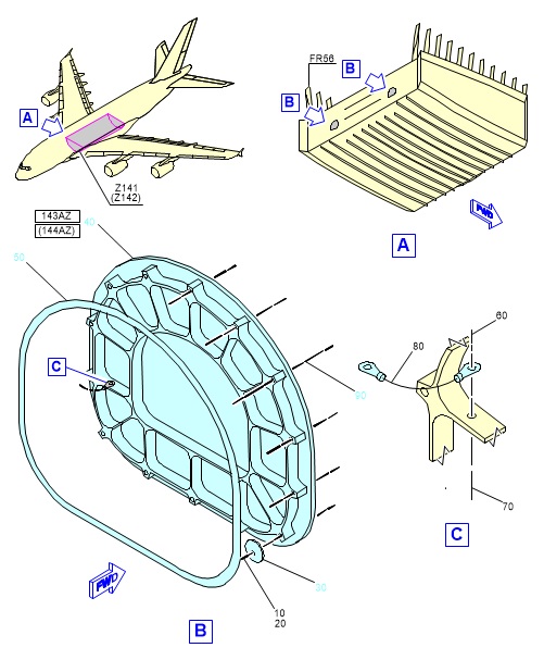 A hotspot can also be used as a navigational aid, for example from one portion of the graphic to another, or a link to another graphic. The example below, Figure 3, shows the overall aircraft, and where Detail A is located.